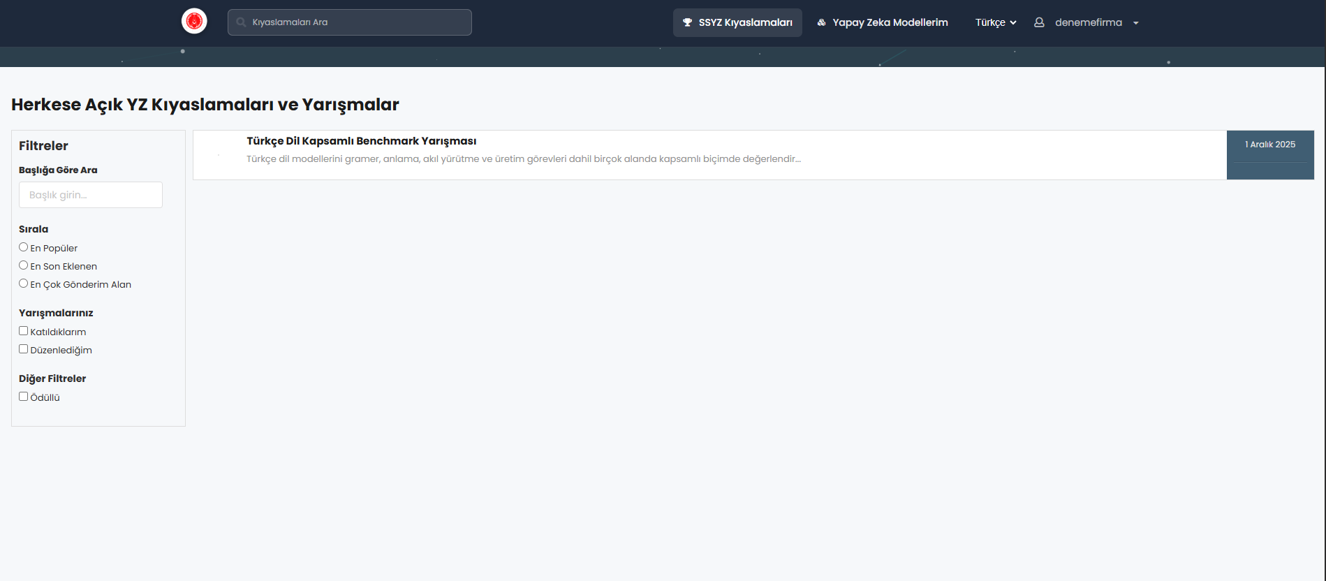 After login, users can view published benchmarks and upload their own models to participate. Users can access published benchmarks through: 1. The “SSYZ Benchmarks” button located in the top menu, 2. The “Explore SSYZ Benchmarks” button under the platform header, 3. By searching the benchmark name using the search bar.